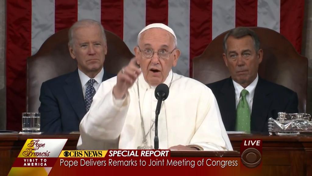 Pope Francis gives address to a joint session of Congress 2015. He also met US leaders and politicians during his state visit.